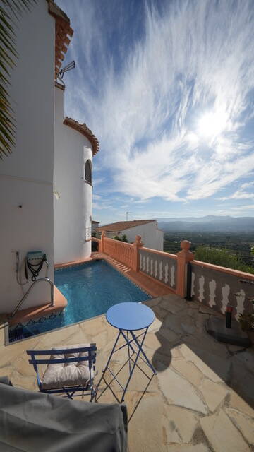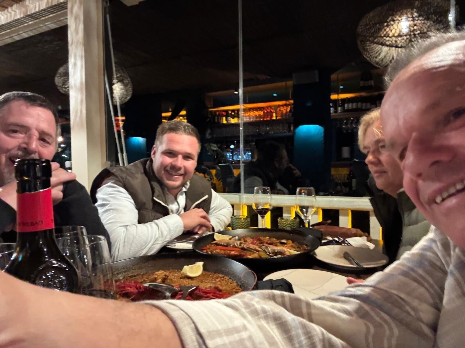 Om 11 uur stonden we bij hun huis — en het was echt even ohhhh en ahhhhh. Wat wonen ze prachtig! Zo’n plek waarvan je denkt: ja, dit is Spanje op z’n mooist. Een heerlijk terras, geweldig uitzicht, en zelfs een zwembad. Alleen… een duik hebben we maar overgeslagen; het water was nu toch echt te fris. Maar buiten zitten kon gelukkig prima.