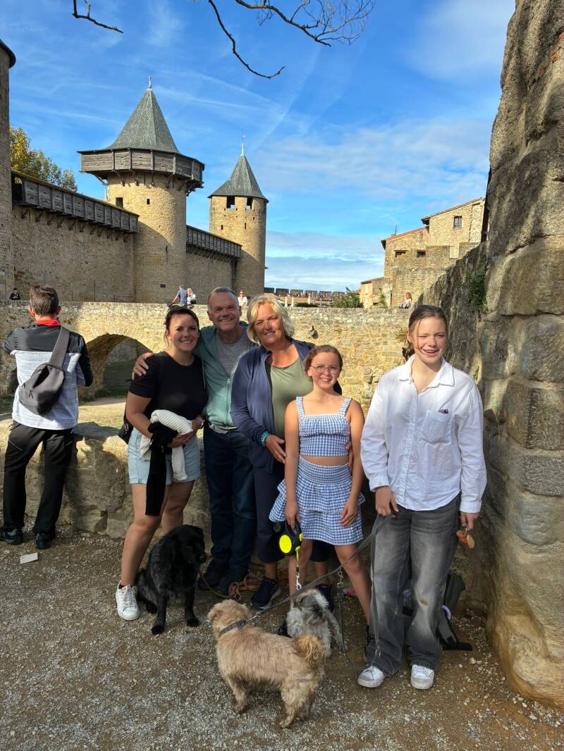 Daarna hadden we afgesproken om samen met Janet en Henk te lunchen in het dorp. Onderweg kwamen we twee Duitse mannen tegen en vroegen hen waar je goed kon eten. Hun aanbeveling bleek perfect, dus daar hebben we afgesproken — met drie honden erbij, want Silkes grote liefde was natuurlijk ook mee. (Volgende keer maak ik écht even een foto, dan kan iedereen zien waarom Silke zo in de war raakt… het lijkt een soort haat-liefdeverhouding: ze haalt aan en duwt weer weg.)