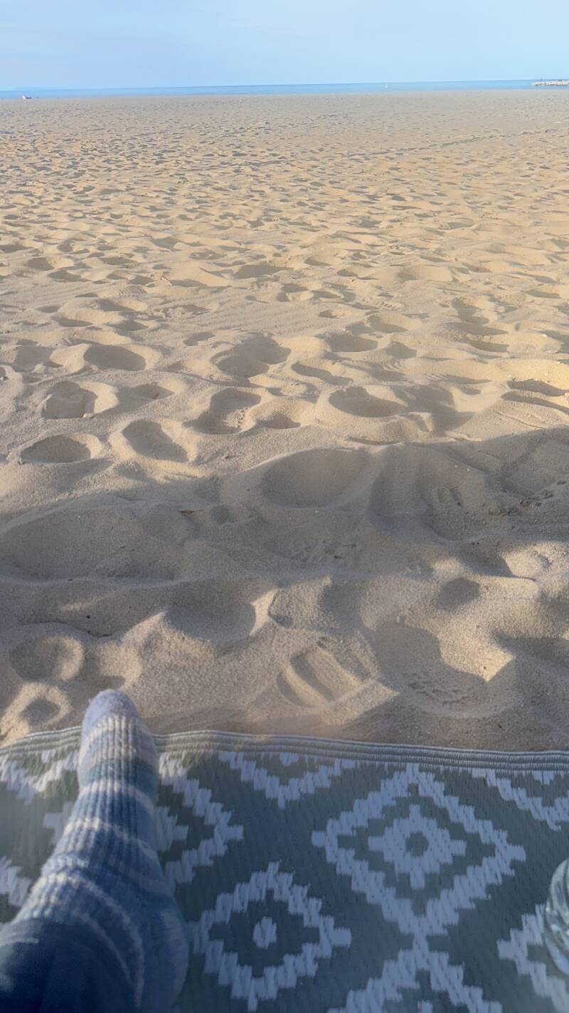We moesten ook nog wat boodschappen hebben, dus eerst even langs de Lidl. Daarna zijn we teruggereden naar dezelfde plek, maar nu op het asfalt — nog steeds met uitzicht op zee, maar een stuk minder last van dat stuivende zand. In de verte zagen we het zand zelfs als een soort mini-tornado omhoog gaan. Bizar gezicht.