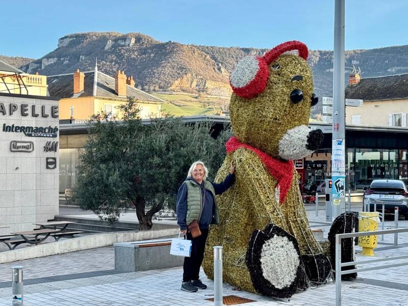 Ron reed door tot bijna de Luxemburgse grens, naar het plaatsje Sierck-les-Bains. Het hele dorp hangt vol met beren, hartjes en kerstversiering, zó leuk! Maar toen we gingen wandelen was het opvallend stil. Veel huizen waren verlaten en de markt zou pas later starten, dus wij hebben gewoon een ommetje langs de Moezel gemaakt en zijn weer teruggelopen naar de camper.