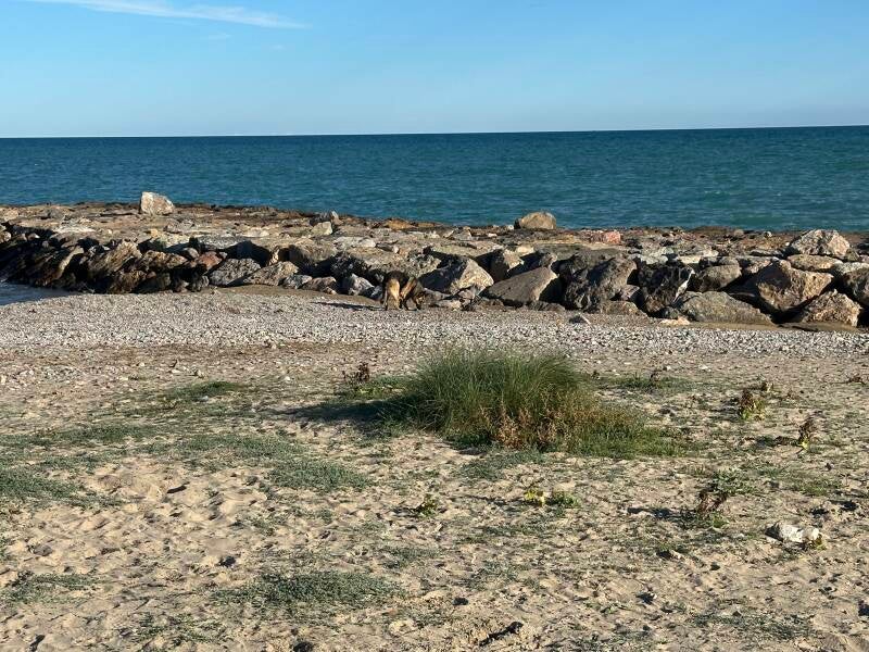 Daarna zijn we opgestaan en hebben ons ochtendritueel gehad: wassen, aankleden, de hondjes uitlaten en ontbijten. Vervolgens alles weer rijklaar gemaakt en nog een poosje gekletst met onze buren — ook Nederlanders. We hadden een erg leuk gesprek over het camperleven en onze bezigheden onderweg. Ze vroeg naar mijn hobby’s, en zo hebben we elkaar laten zien wat we allemaal maken. Ik vertelde dat wij onbeperkt wifi hebben, waardoor ik regelmatig deze website kan bijhouden. Daarnaast lees en brei ik graag. Zo hebben we bijna de hele ochtend heerlijk zitten kletsen. Ze kunnen nu ook meelezen wat we doen en waar we zijn. Ze reizen richting het zuiden, volgens mij op weg naar Portugal.