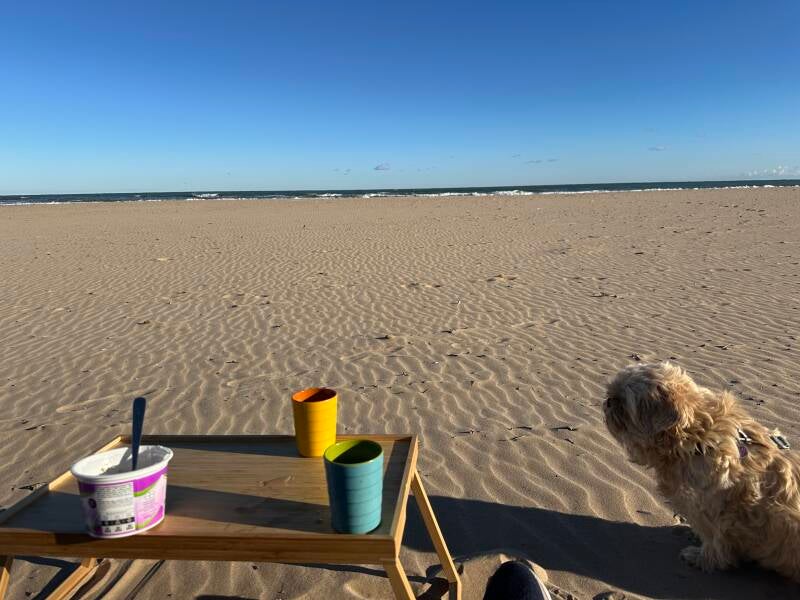 We hebben nog een rondje met de hondjes gelopen en zijn daarna heerlijk onderuitgezakt in de camper gaan zitten. Soms is een beetje internetten en niks doen ook gewoon prima.