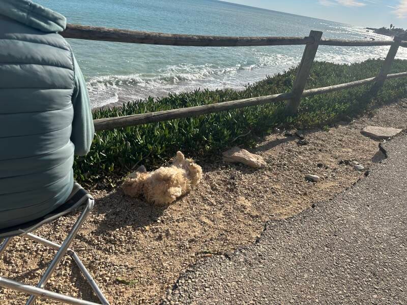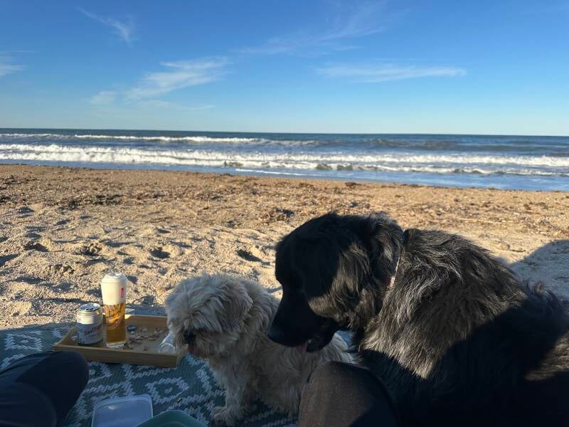 Vandaag stond in het teken van een echte reisdag, maar eerst wilden we nog één keer genieten van de kust. We begonnen de ochtend met een fijne wandeling langs zee, zodat de hondjes moe en tevreden de reis in konden. Daarna hebben we buiten heerlijk ontbeten, een koel drankje erbij, en toen werd het toch echt tijd om afscheid te nemen. Dag mooie kust van Spanje.